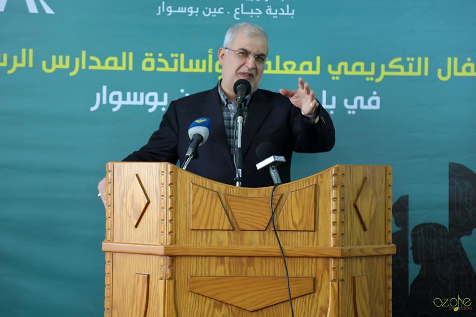 نظم إتحاد بلديات إقليم التفاح وبلدية جباع-عين بوسوار وجمعية البر والإحسان لأبناء جباع، وبرعاية رئيس كتلة الوفاء للمقاومة الحاج محمد رعد، احتفالاً تكريمياً لأساتذة المدارس الرسمية في بلدتي جباع وعين بوسوار وذلك يوم السبت الواقع في 10 آذار 2018، حضره حشد من الفعاليات الرسمية والسياسية والتربوية والإجتماعية. وكانت كلمة لرئيس إتحاد بلديات إقليم التفاح الحاج بلال شحادة أكد فيها على سعي الإتحاد الدائم للاهتمام بالشأن التربوي والمساهمة أيضاً للنهوض بمستوى التعليم الرسمي. كما أكد رئيس كتلة الوفاء للمقاومة الحاج محمد رعد في كلمته على أهمية دعم المدرسة الرسمية لجعل صورتها باهرة وجاذبة مشدداً على أهمية أداء الرسالة التربوية والإنسانية والوطنية في بناء الأجيال. بعدها توالت كلمات لرئيس بلدية جباع-عين بوسوار الحاج أحمد غملوش، ورئيس جمعية البر والإحسان الأستاذ محمد عيسى أكدوا فيها علأهمية واستمرار دعم التعليم الرسمي بكافة الوسائل المتاحة، أما كلمة الأساتذة ألقتها مديرة ثانوية جباع الأستاذة لطفية مهدي