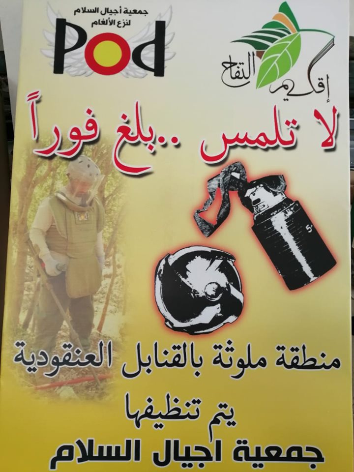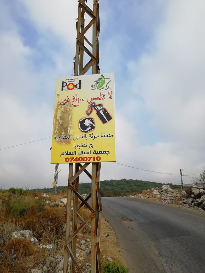 حرصًا منه على المحافظة على السّلامة العامّة، قام إتحاد بلديات إقليم التفاح بالتعاون مع جمعية أجيال السلام المعنيّة بنزع الألغام، بتعليق لافتات تحذّر المواطنين من الاقتراب من المناطق الملوّثة بالقنابل العنقوديّة والتي تعمل الجمعية على تنظيفها حاليًّا.