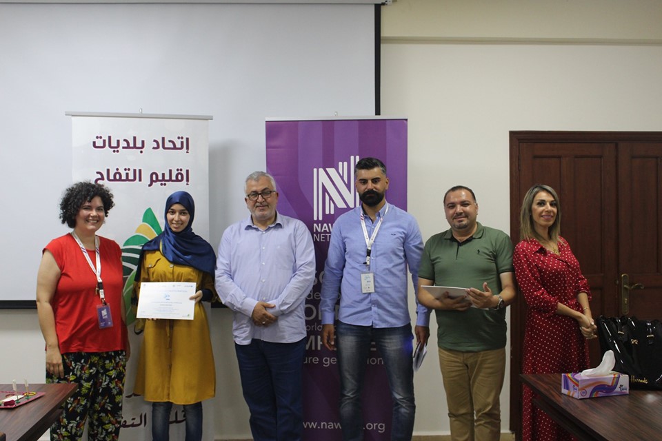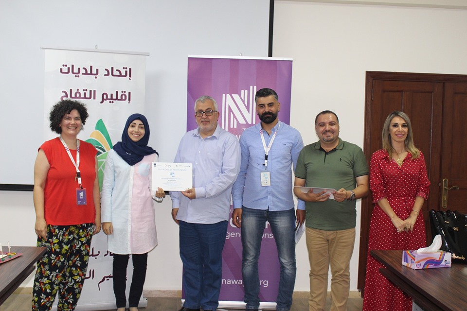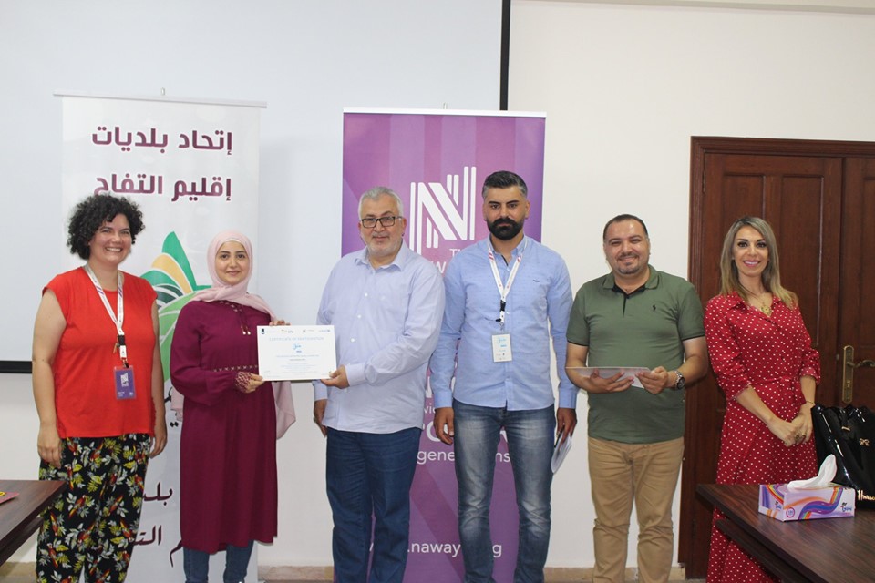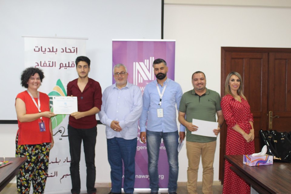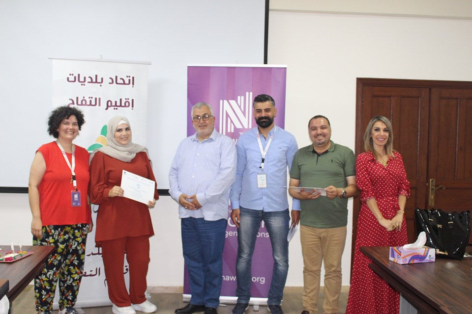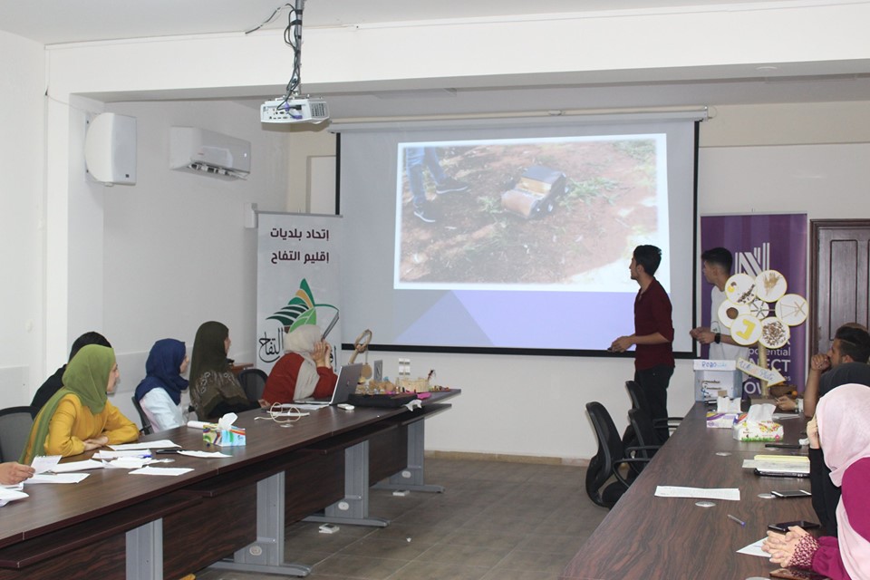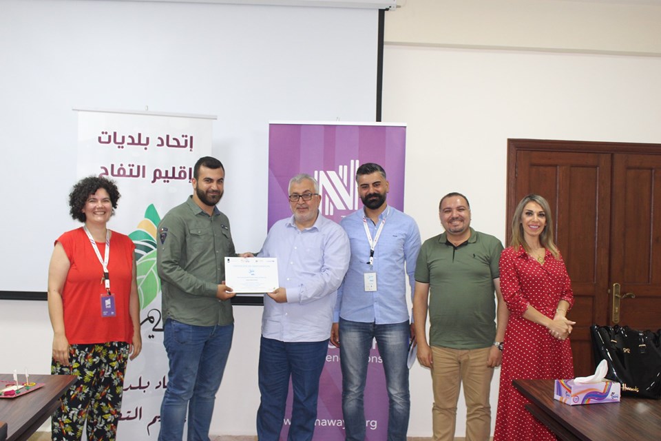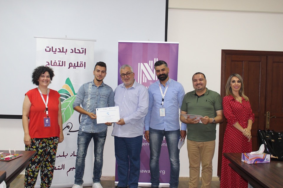 إختتام دورة ريادة الأعمال والمشاريع التي يقيمها إتحاد بلديات إقليم التفاح بالتعاون مع جمعية نوايا واليونيسيف، وتأهل الفرق المشاركة إلى المرحلة الثانية بعد تقديم عرض مميز لمشاريعهم أمام لجنة من جمعية نوايا وبحضور رئيس إتحاد بلديات إقليم التفاح الحاج بلال شحادة.