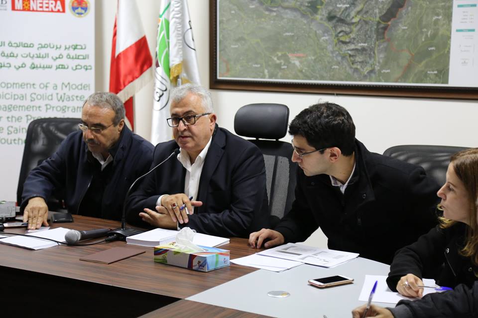 إيمانًا منه بالدور الكبير الذي تضطلع به البلديات والمدارس في إنجاح المشاريع التنموية المحليّة، أقام اتحاد بلديات إقليم التفاح جلسة نقاشٍ واستطلاعٍ للرأي حول مشروع إدارة النفايات الصلبة الذي يُنفّذه، جمعت رؤساء البلديات وعددًا من مدراء المدارس والفعاليّات في قاعة الاتحاد وذلك نهار السبت الموافق 08 كانون الأول 2018. دارَ الجلسة فريقُ المشروع الذي ضمّ باحثين من الجامعة الأميركيّة في بيروت ومؤسسة منيرة، وقد جرى عرضٌ للمشروع بمراحله كافّة، تلاه نقاشٌ مطوّلٌ نقلَ فيه المشاركون تجاربهم السابقة وأعطوا آرائهم، مبدين حماسًا رائعًا لمشروعٍ قوامه المشاركة والاستمراية. كذلك، عُقدت في اليوم عينه جلسة اللجنة التوجيهية الأولى للمشروع واتًّخِذَت القرارات اللازمة للمرحلة المقبلة، بحضور رئيس الاتحاد الحاج بلال شحادة ونائبه رئيس بلدية رومين الحاج يحيى جوني ورئيس اتحاد بلديات جبل الريحان السيد باسم شرف الدين بالإضافة إلى ممثلين عن اتحاد بلديات جزين والجامعة الأميركية في بيروت ومؤسسة منيرة وفريق عمل المشروع.