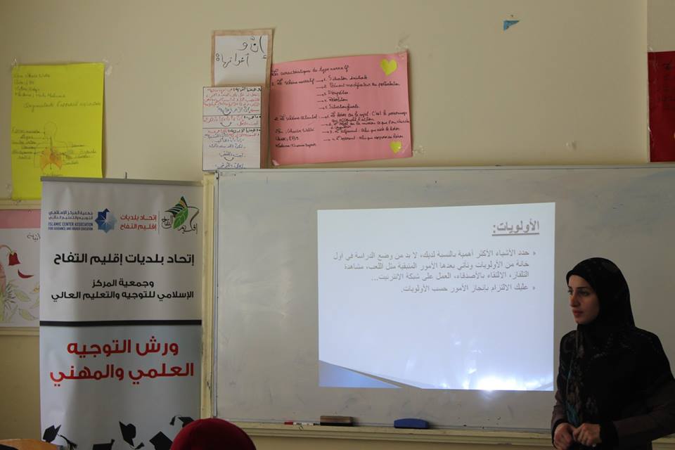 أطلق إتحاد بلديات إقليم التفاح اليوم أولى ورش التوجيه العلمي والمهني بالتعاون مع جمعية المركز الإسلامي للتوجيه والتعليم العالي، وذلك في ثانوية جباع. الورش تنوعت لصفوف التاسع، والثاني والثالث ثانوي بهدف تعريف الطلاب على الإختصاصات العلمية وتوجيههم لاختيار مهن المستقبل، على أن يستكمل النشاط في ثانويات الإقليم الباقية في الأسابيع المقبلة