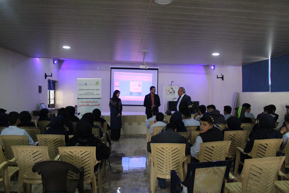 إتحاد بلديات إقليم التفاح يستكمل ورش التوجيه العلمي والمهني بالتعاون مع جمعية المركز الإسلامي للتوجيه والتعليم العالي، لطلاب التاسع والثاني والثالث ثانوي، اليوم الخميس الواقع في 22-3-2018 في ثانوية عرب صاليم.
